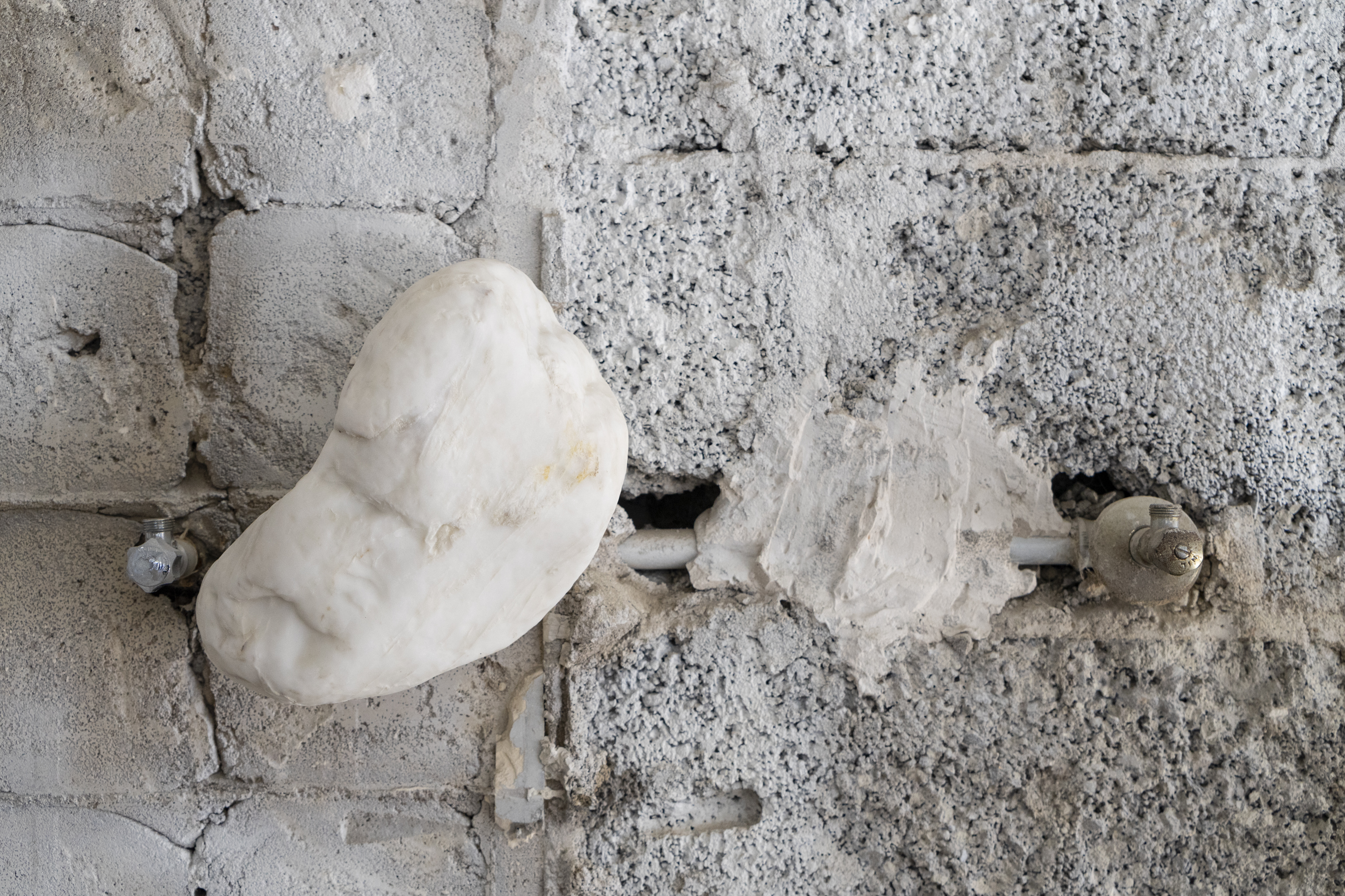 Arhun Aksakal, landscape, 2020, detail, plaster, sand, styrofoam, dimensions variable